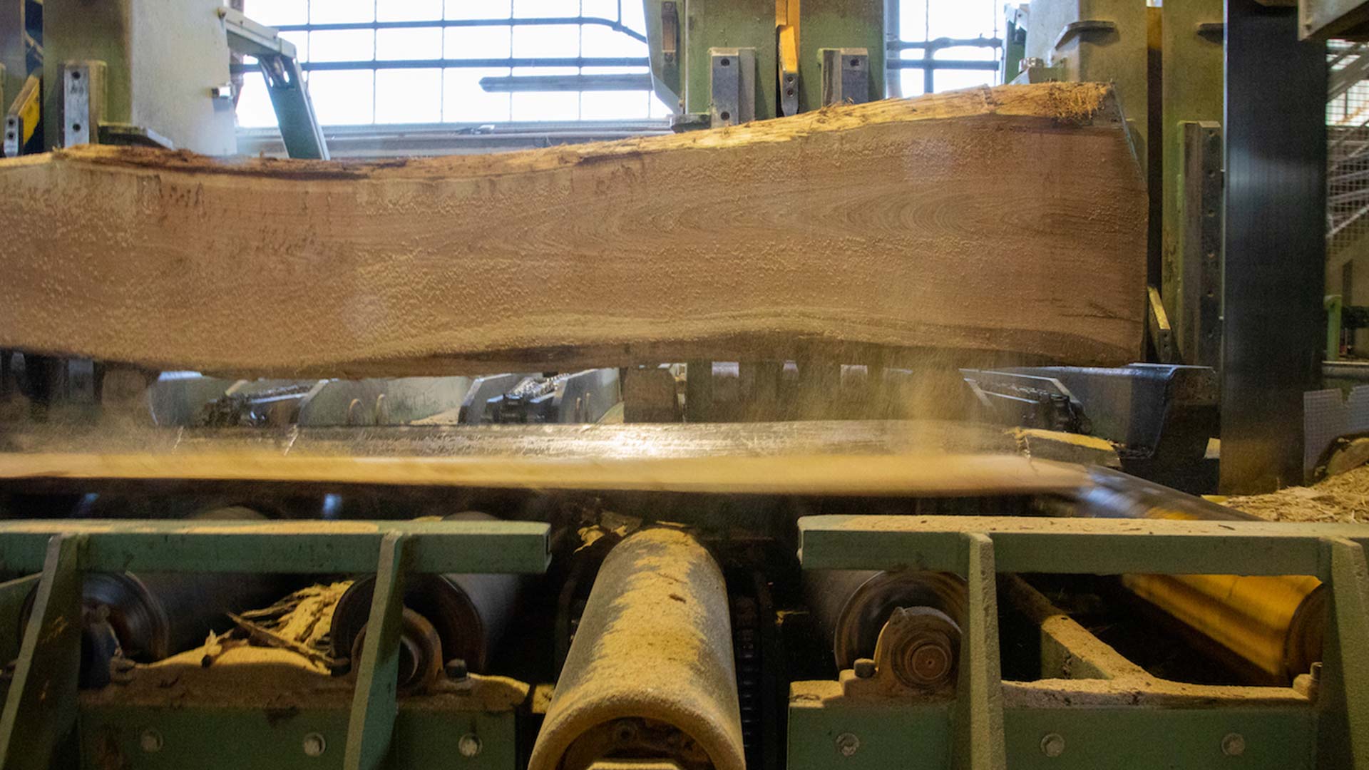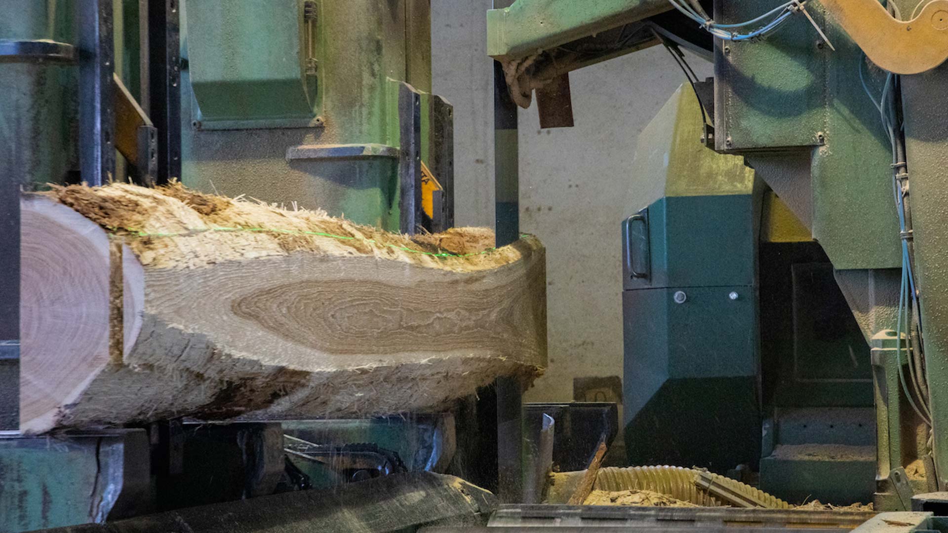 Premier atelier de sciage de chêne mécanisé de France.